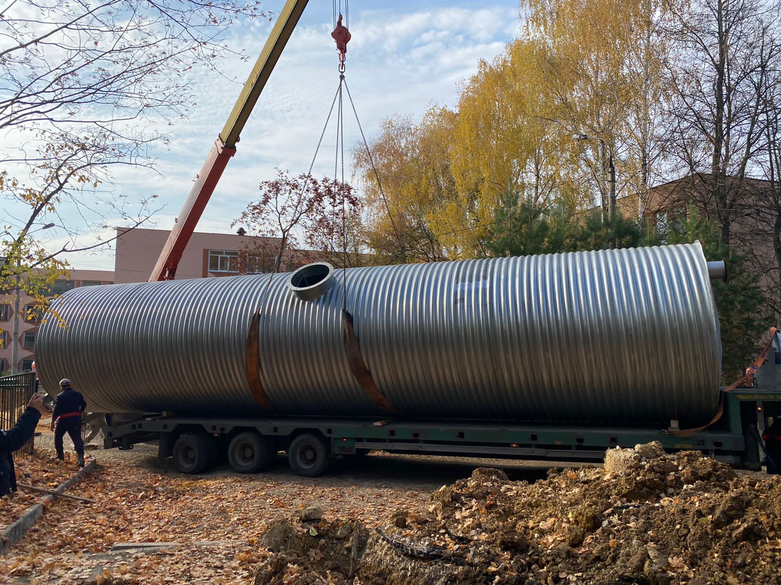vПоскольку армированное стекловолокно, используемое для производства емкостей, придает им устойчивость к вибрациям и высокому давлению, чему также способствует цилиндрическая форма, устанавливаться они могут как вблизи дорог и других объектов транспортной инфраструктуры, так и в подвижные грунты.