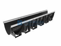 Усиленные водоотводные лотки для ливневой канализации укрепляются за счет мощных стальных насадок съемного типа. При желании от них можно отказаться, если этого не требует конкретная ситуация. Даже с такими насадками изделие по-прежнему остается максимально легким в сравнении с металлическими и тем более бетонными аналогами. Также устойчивость могут добавить торцевые заглушки и мощные чугунные или стальные оцинкованные решетки.