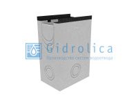 На боковых стенках пескоуловителя предусмотрены рельефы для подсоединения лотков с гидравлическим сечением DN200 и труб DN 110 и 160 мм. Внутрь можно установить корзину для мусора, которая служит дополнительным фильтром и упрощает очистку. Сверху бетонную конструкцию закрывают решеткой. Аксессуары поставляются отдельно.