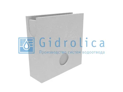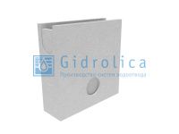 Пескоуловитель совместим с водоотводными лотками такой же серии и DN100, и трубами сечением 100 и 150 мм. Для их подсоединения на боковых сторонах сделаны специальные рельефы.
