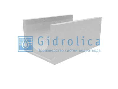 Коробчатый лоток выполнен из армированного бетона с высокой плотностью, что обеспечивает прочность, стойкость к морозу и устойчивость к воздействию агрессивных сред. Геометрия с уклоном 0,5% заложена в теле изделия — это позволяет организовать самотечный водоотвод без дополнительных укладочных уклонов. Длина одного элемента — 1000 мм, что удобно при монтаже длинных линий.