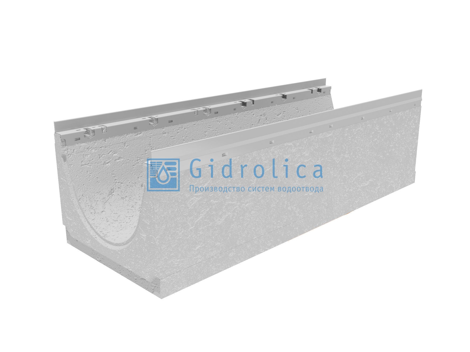 Высокопрочный коробчатый лоток выполнен из качественного бетона. Для усиления прочностных характеристик конструкции в ее состав введена волокнистая фибра. Все изделия данной линейки комплектуются торцевыми накладками из оцинкованной стали: как следствие, конструкция хорошо справляется с любыми весовыми нагрузками (включая массу проезжающего транспорта).