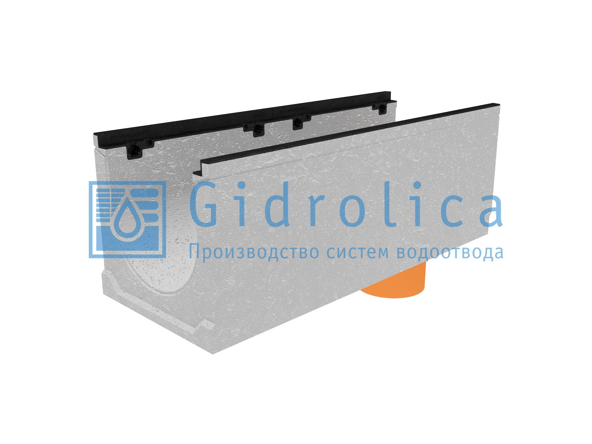 Лоток водоотводный бетонный коробчатый (СО-300мм), с чугунной насадкой, с водосливом КUв 100.39,9 (30).37(30) - BGZ-S, № -5-0
