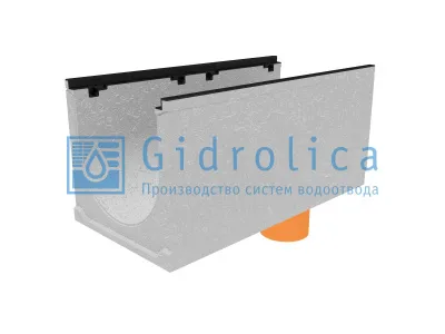 Лоток водоотводный бетонный коробчатый (СО-400мм), с чугунной насадкой, с водосливом КUв 100.49,9 (40).47(40) - BGZ-S, № 15-0