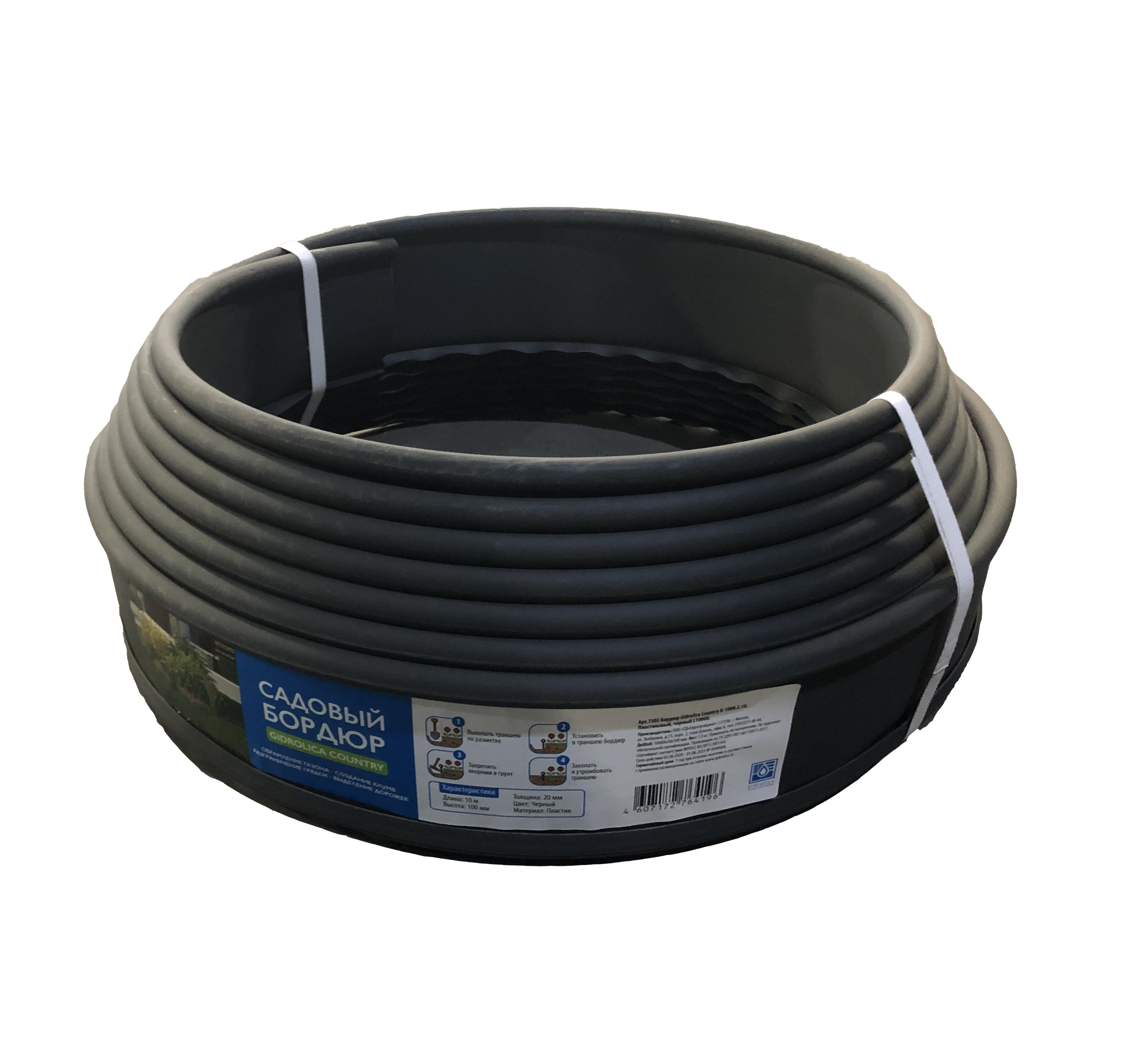 Бордюр Gidrolica Country Б-1000.2.15 - пластиковый черный L10000