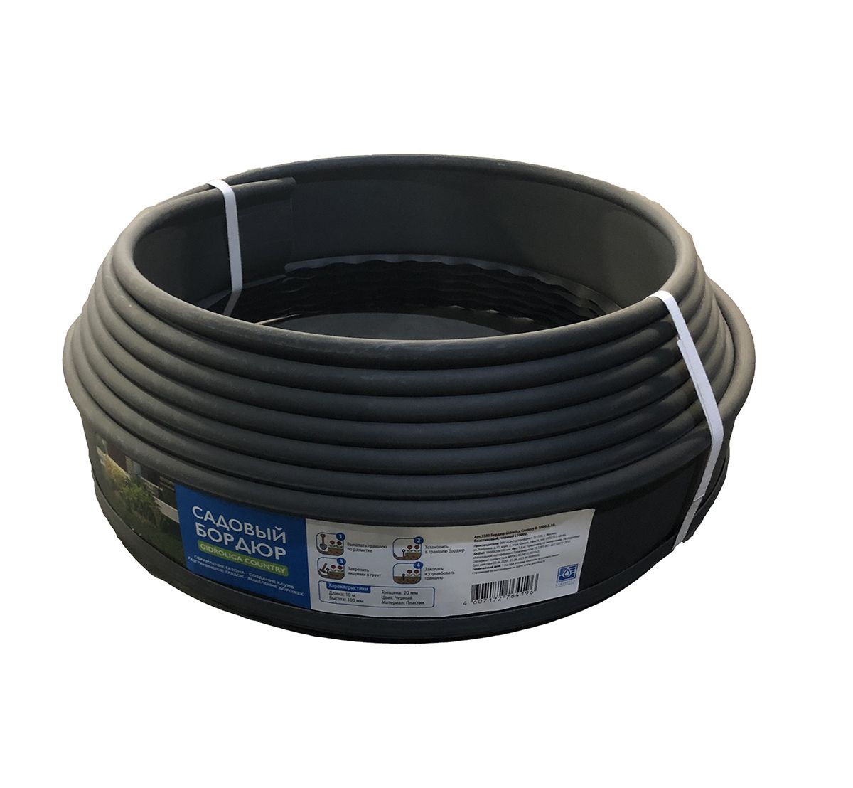 Бордюр Gidrolica Country Б-2500.2.15 - пластиковый черный L25000, без отв.