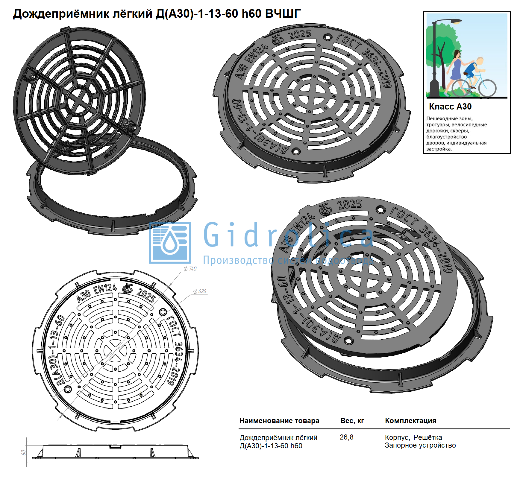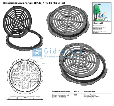 Дождеприемник малый круглый Д(А30)-1-13-60, h60 мм