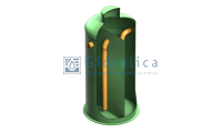 Жироуловитель этой модели рассчитан на объем осадка в 600 литров и объем жира в 240 литров. Расход составляет 5 литров в секунду. Выход размещен на высоте 1330 мм, вход — 1400 мм. Диаметр резервуара составляет 1400 мм. Для входа и выхода нужны трубы диаметром 110 мм.