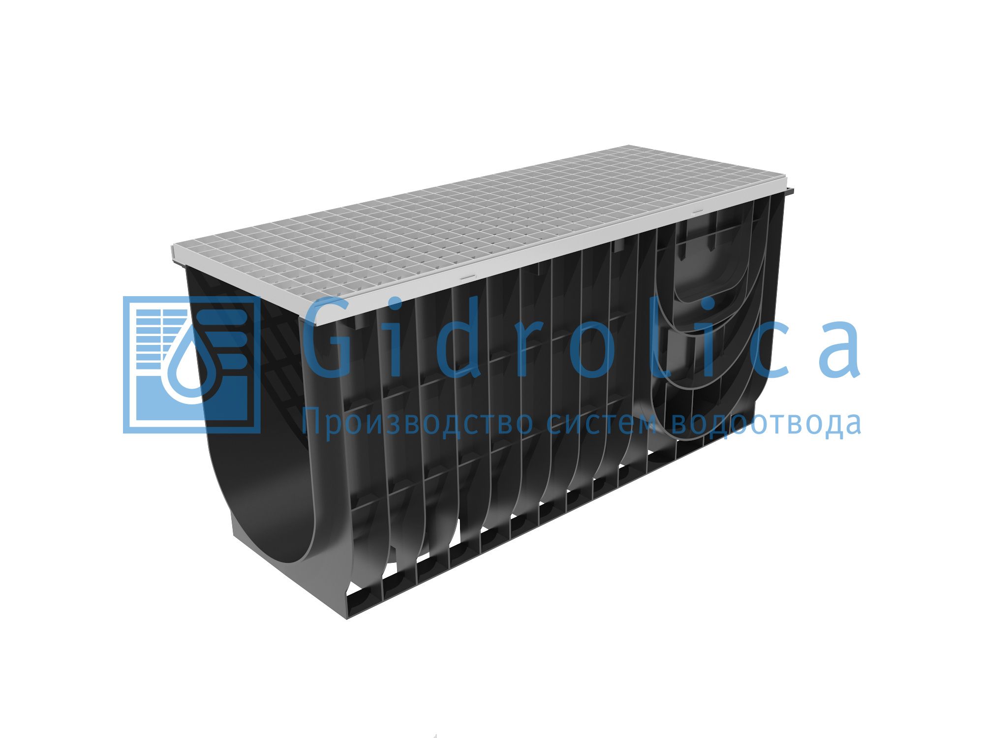 Комплект Gidrolica Light: лоток водоотводный ЛВ-30.38.48 - пластиковый c решеткой РВ -30.37.100 ячеистой стальной оцинкованной, кл. А15