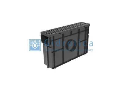 Комплект Gidrolica Light: пескоуловитель для пластиковых лотков ПУ 10.11,5.32 - пластиковый с решеткой РВ- 10.11.50 пластиковой, кл. A15