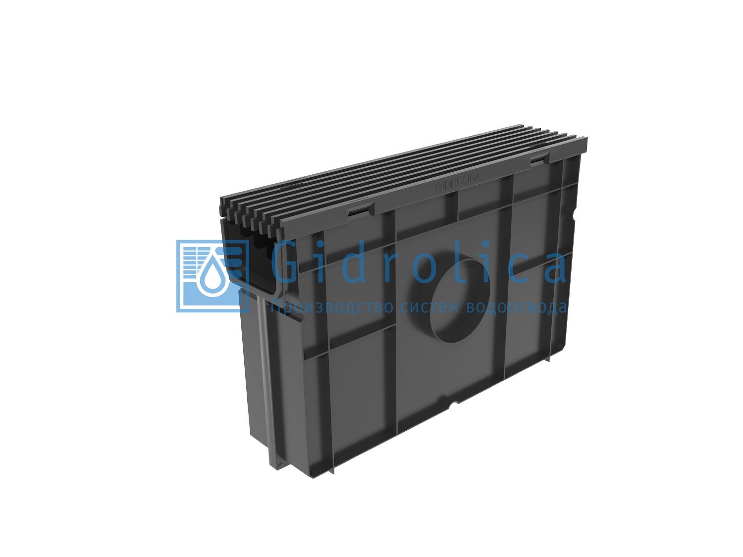 Комплект Gidrolica Light: пескоуловитель для пластиковых лотков ПУ 10.11,5.32 - пластиковый с решеткой РВ- 10.11.50 пластиковой, ячеистой кл. A15