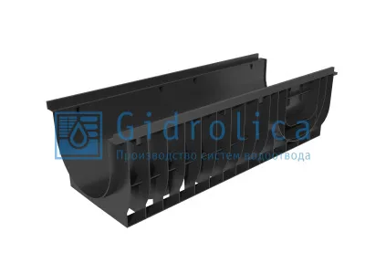 Водоотводящий лоток из морозостойкого прочного пластика предназначен для установки в бетонное основание, сбора и утилизации дождевых, снеговых, талых вод. Обладает условным проходным сечением 300 мм, шириной 380 мм и минимальной высотой в данной серии изделий (294 мм). Может комплектоваться всеми расходными материалами водоотводной системы Gidrolica® Pro.