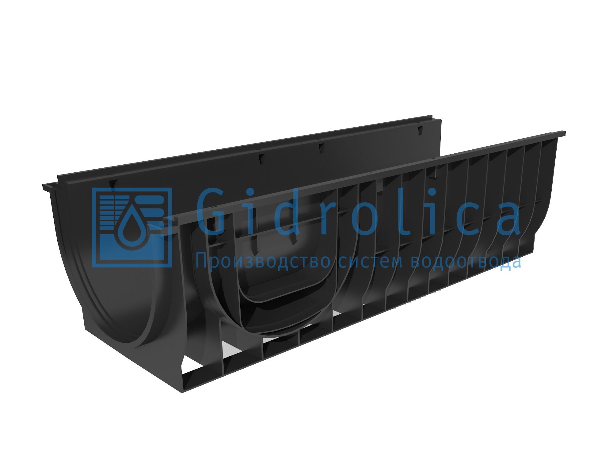 Водоотводящий пластиковый лоток условного внутреннего диаметра 300 мм системы водоотвода GIDROLICA® STANDART предназначен для установки в бетонное основание. Обеспечивает сбор и утилизацию сточных, грунтовых, дождевых вод с территорий автосервисов, автомоек, АЗС, дорог со средней интенсивностью движения, гаражей, стоянок.