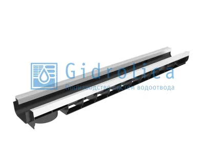 Лоток усилен по боковым кромкам металлической пластиной с выемкой, в которую удобно закладывать решетку, выполненную из пластика, металла или чугуна. Изделие рекомендовано к установке на ровных площадках, не имеющих уклона, или в верхних частях наклонных участков.