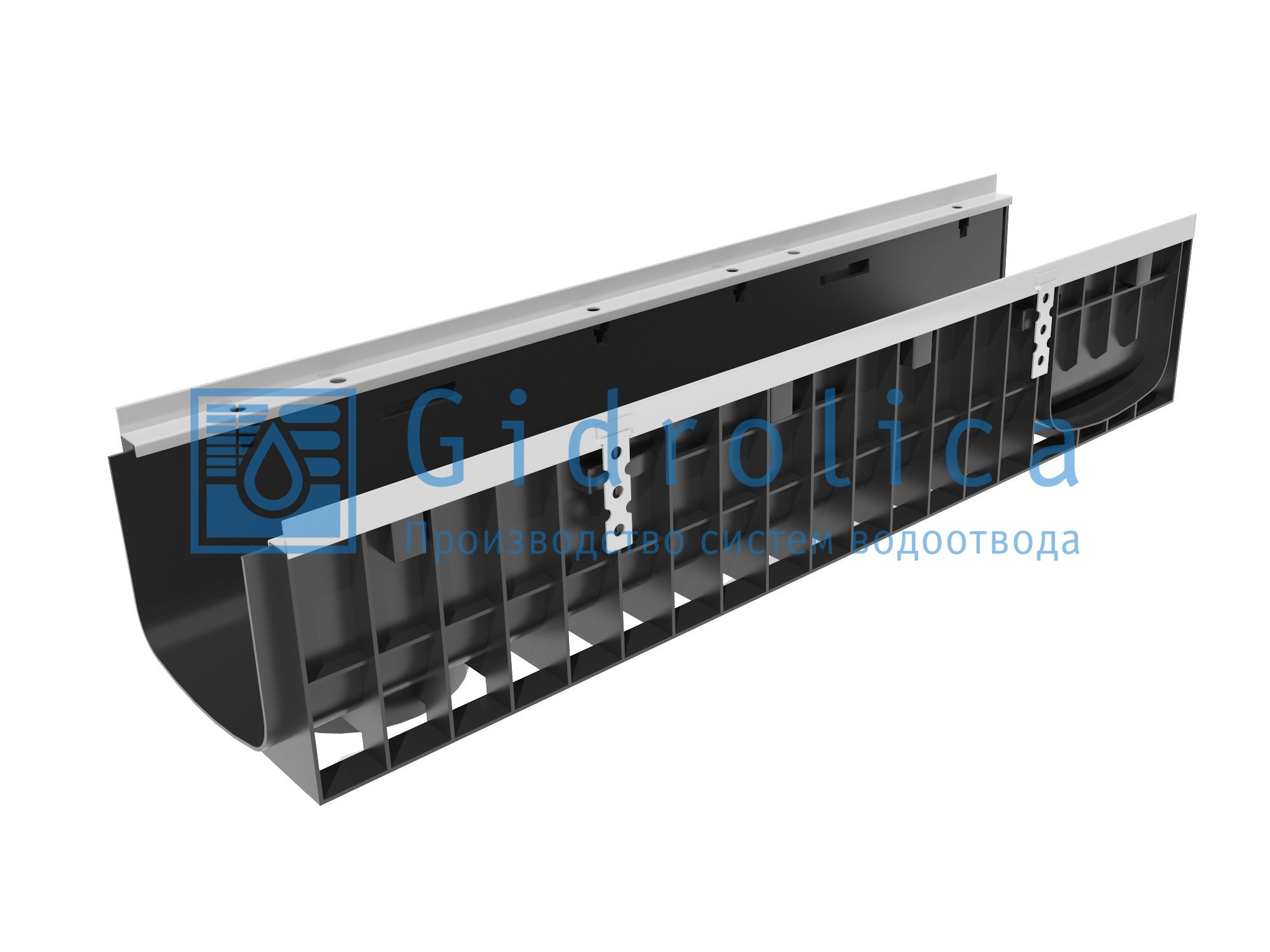 Полипропиленовые лотки условного прохода в 200 мм изготавливаются для использования в системах водоотведения серии Gidrolica® Super или в качестве самостоятельной детали. Изделия усилены стальными оцинкованными насадками на борта и закладными для крепления в бетоне.