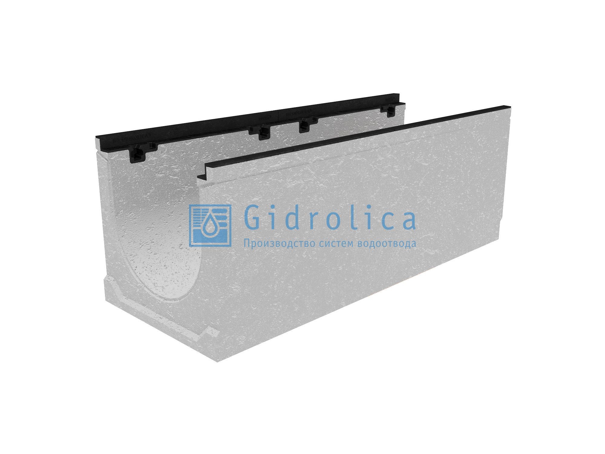 Лоток водоотводный бетонный коробчатый (СО-300мм), с чугунной насадкой, с водосливом КUв 100.39,9 (30).52(45) - BGZ-S, № 25-0