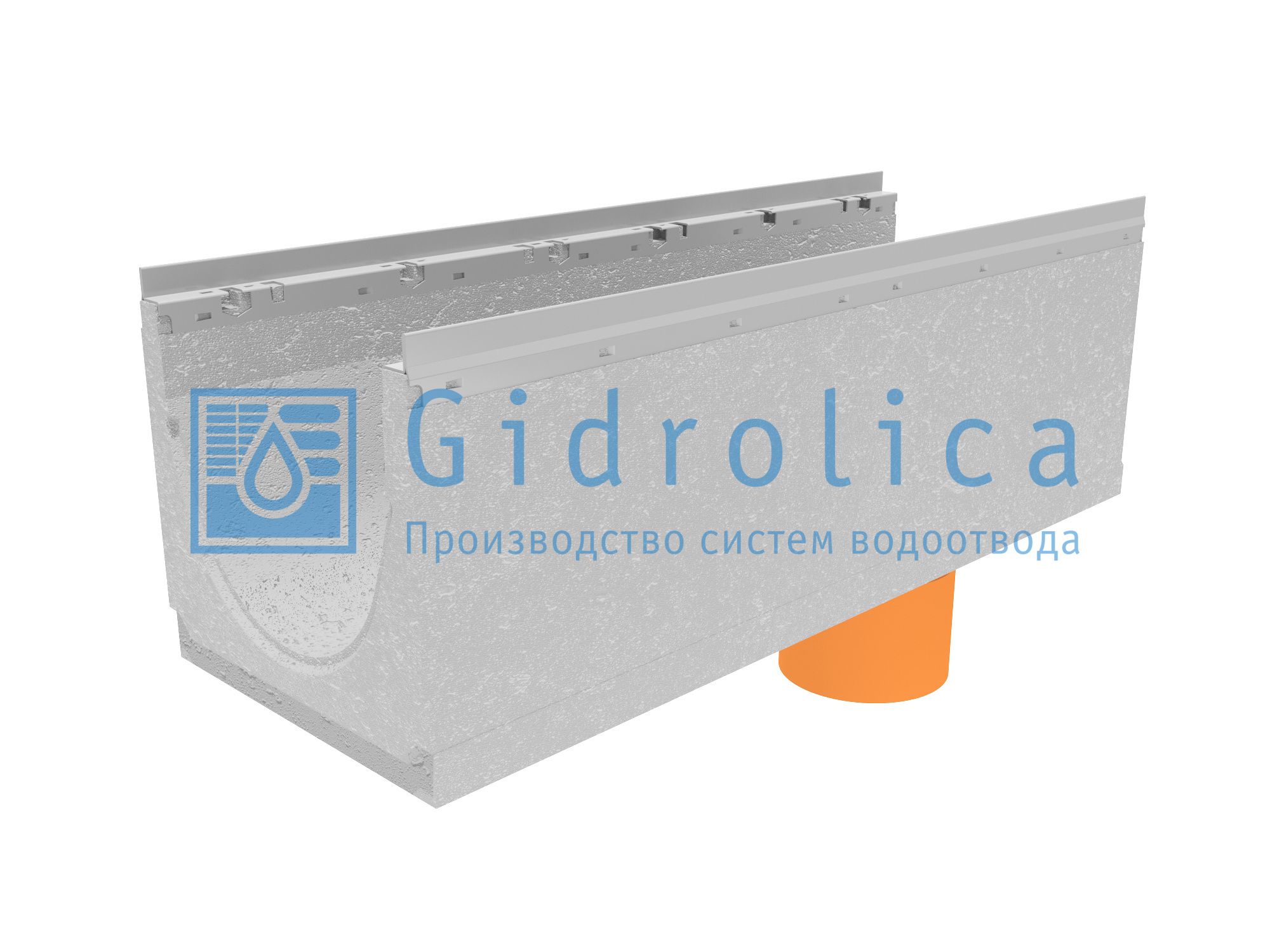 Лоток водоотводный бетонный коробчатый (СО-300мм), с оцинкованной насадкой, с водосливом КUв 100.36,3(30).34,5(28) - BGU-Z, № 10-0