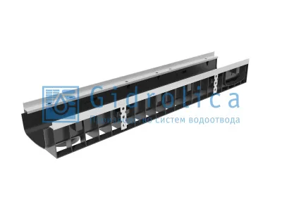 Водоотводящий пластиковый лоток условного проходного сечения 150 мм предназначен для установки в бетонное основание. В системе Gidrolica® Super способен обеспечить эффективное водоотведение дождевых, грунтовых, талых вод и их утилизацию.