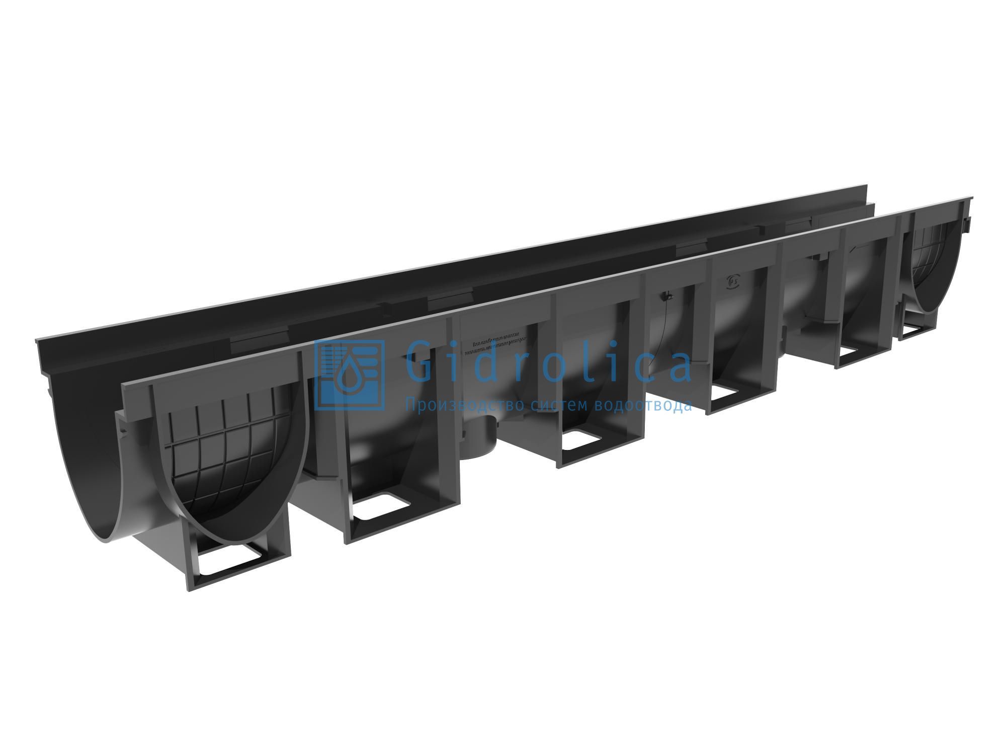 • Прочность и устойчивость к нагрузкам. Лоток имеет класс нагрузки C250, что позволяет ему выдерживать нагрузки до 25 тонн. Это делает его подходящим для установки в местах с умеренным движением транспорта: парковки и пешеходные зоны.