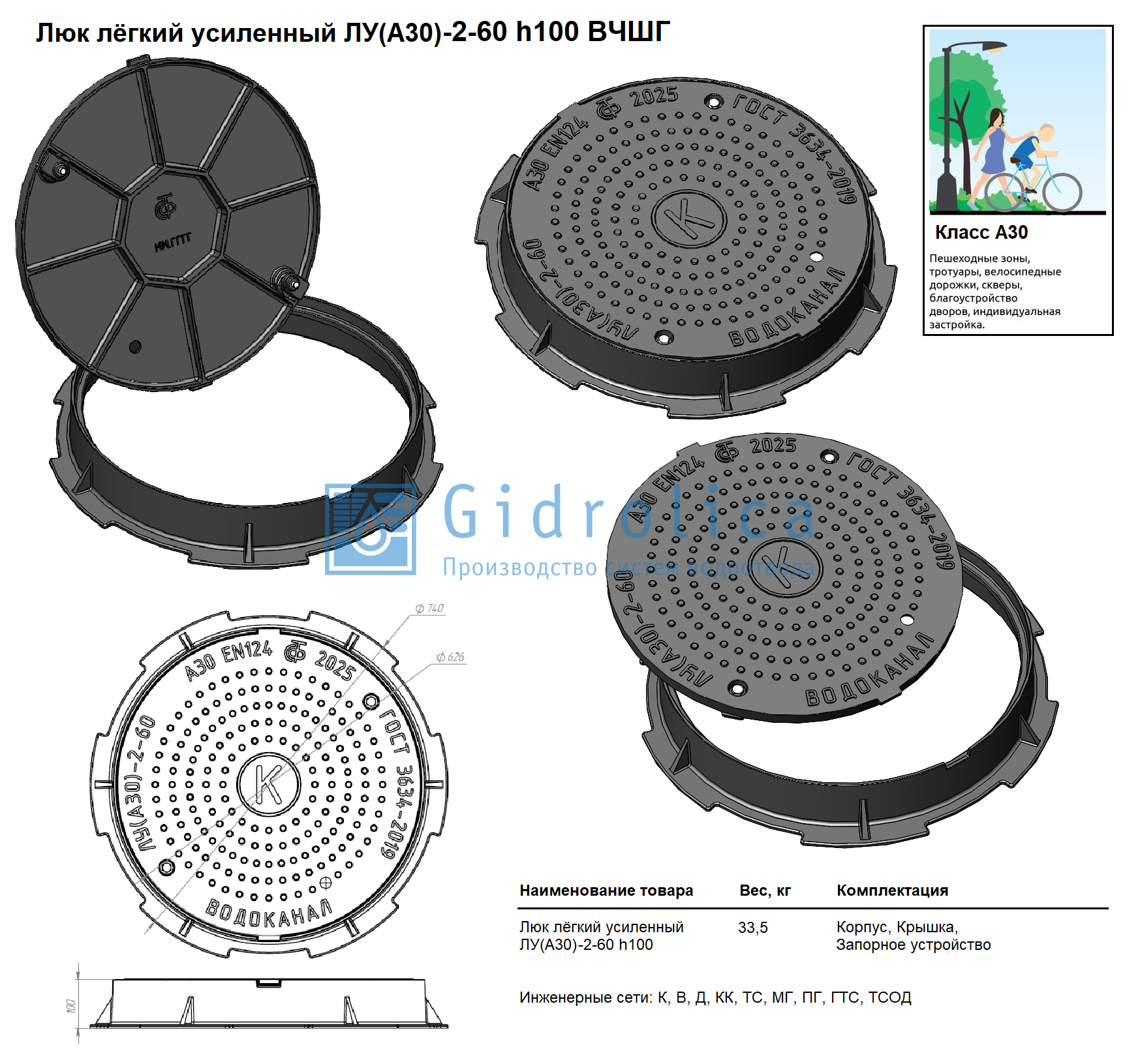 Люк легкий усиленный ЛУ(А30)-2-60, h100 мм