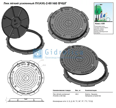 Люк легкий усиленный ЛУ(А30)-2-60, h60 мм