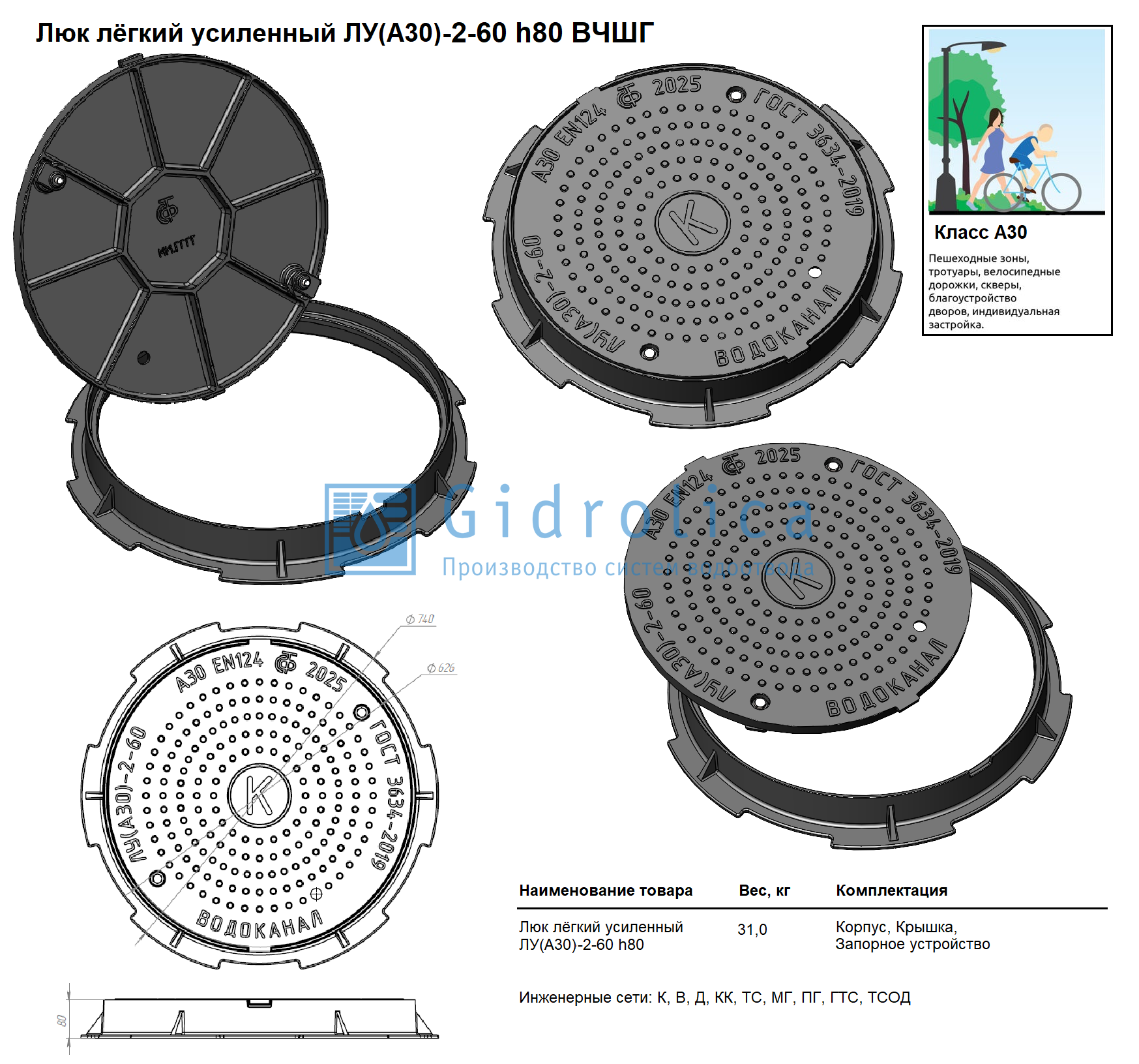 Люк легкий усиленный ЛУ(А30)-2-60, h80 мм