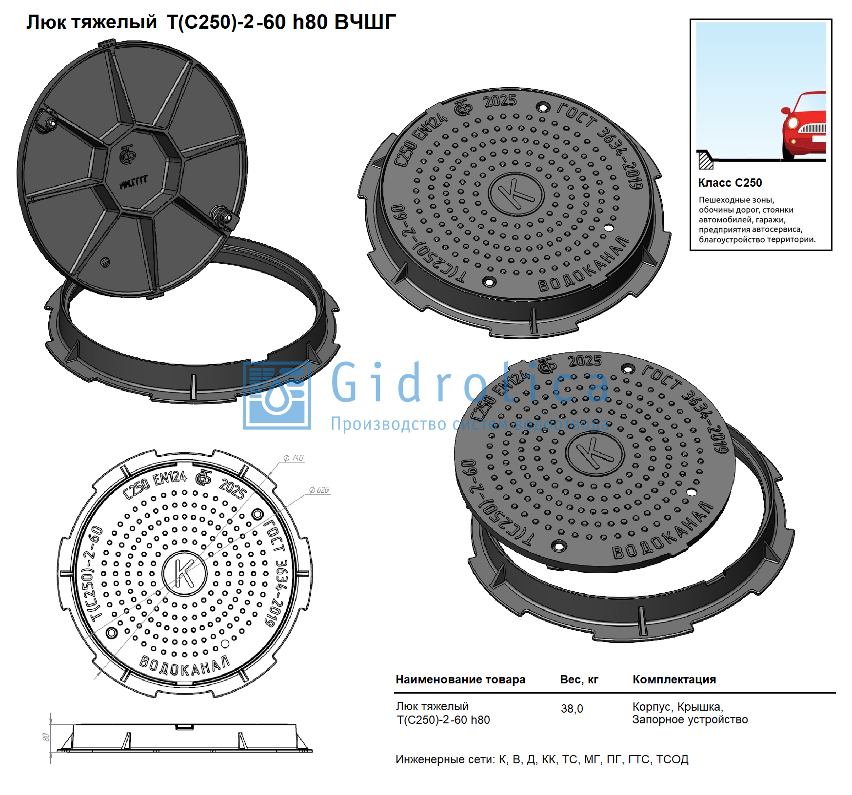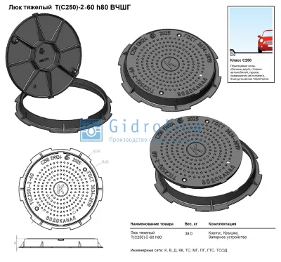 Люк тяжелый Т(С250)-2-60, h80 мм