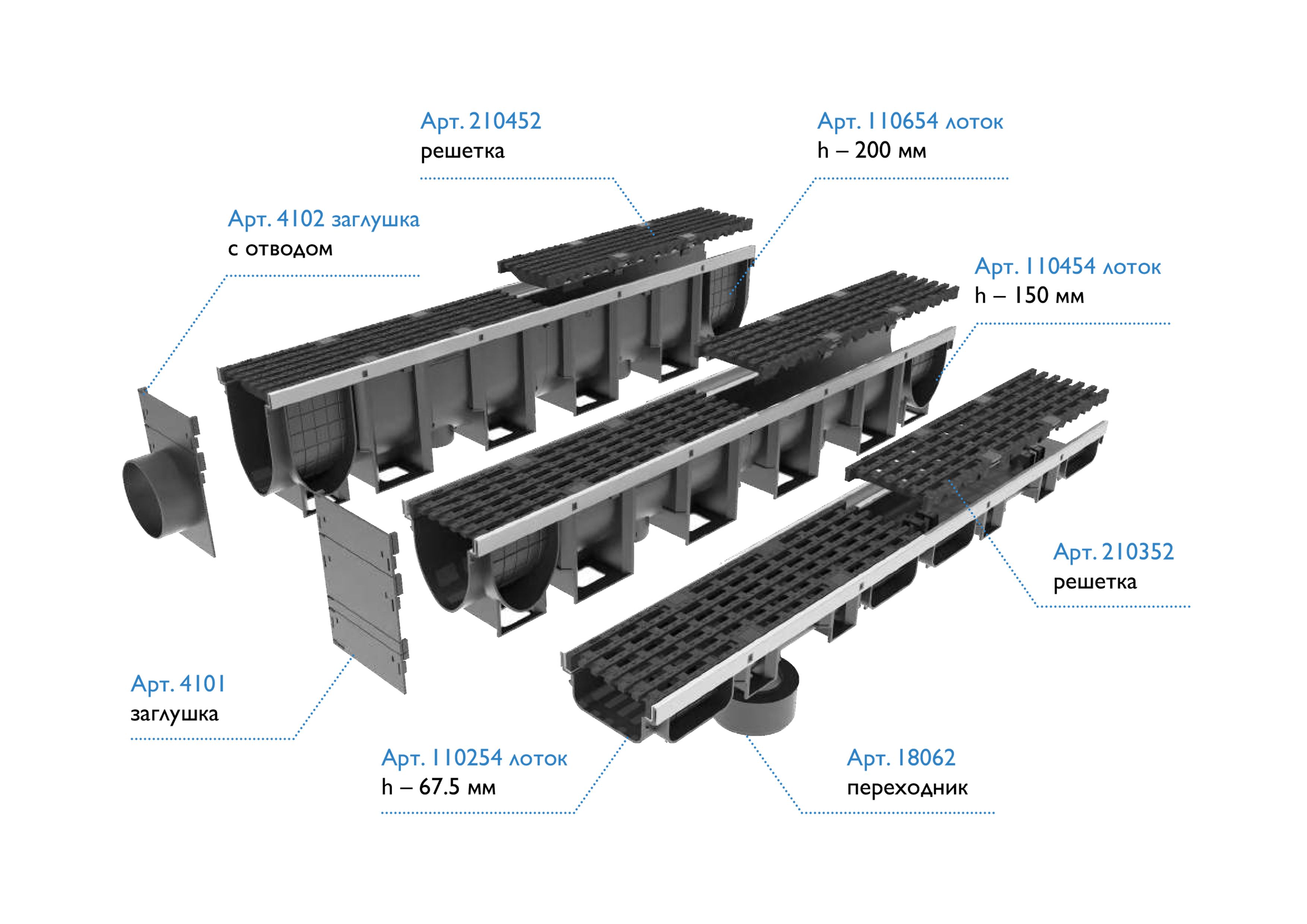 110254 | D400 | Лоток водоотводный VS LINE DN100.14.07 - пластиковый, с насадкой, кл. D400 | DN100 | 67.5 |